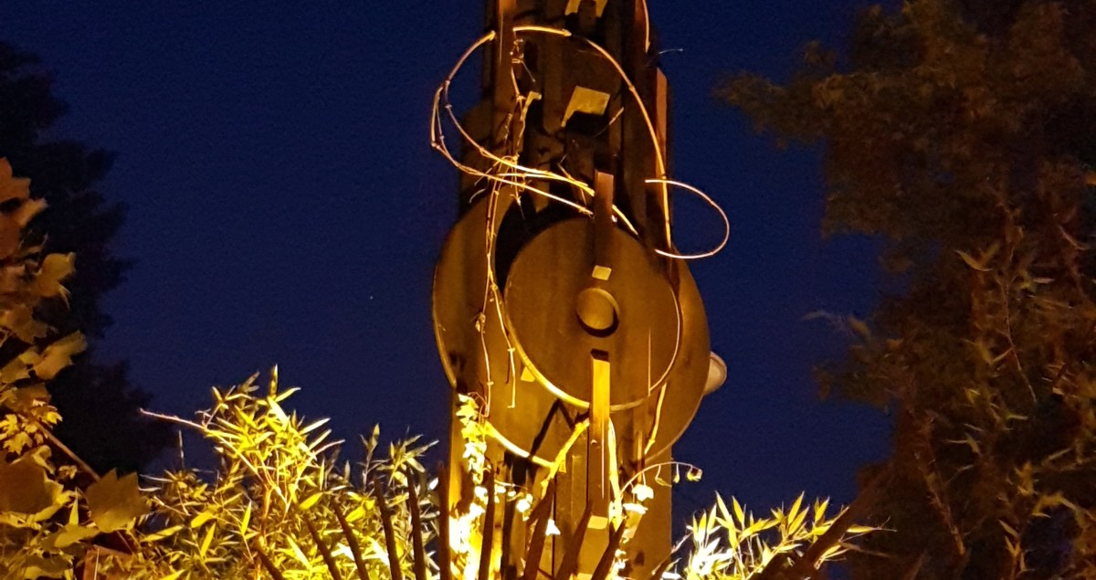 Est une sculpture réalisée entièrement en bois, elle pointe à 4m50 de hauteur.