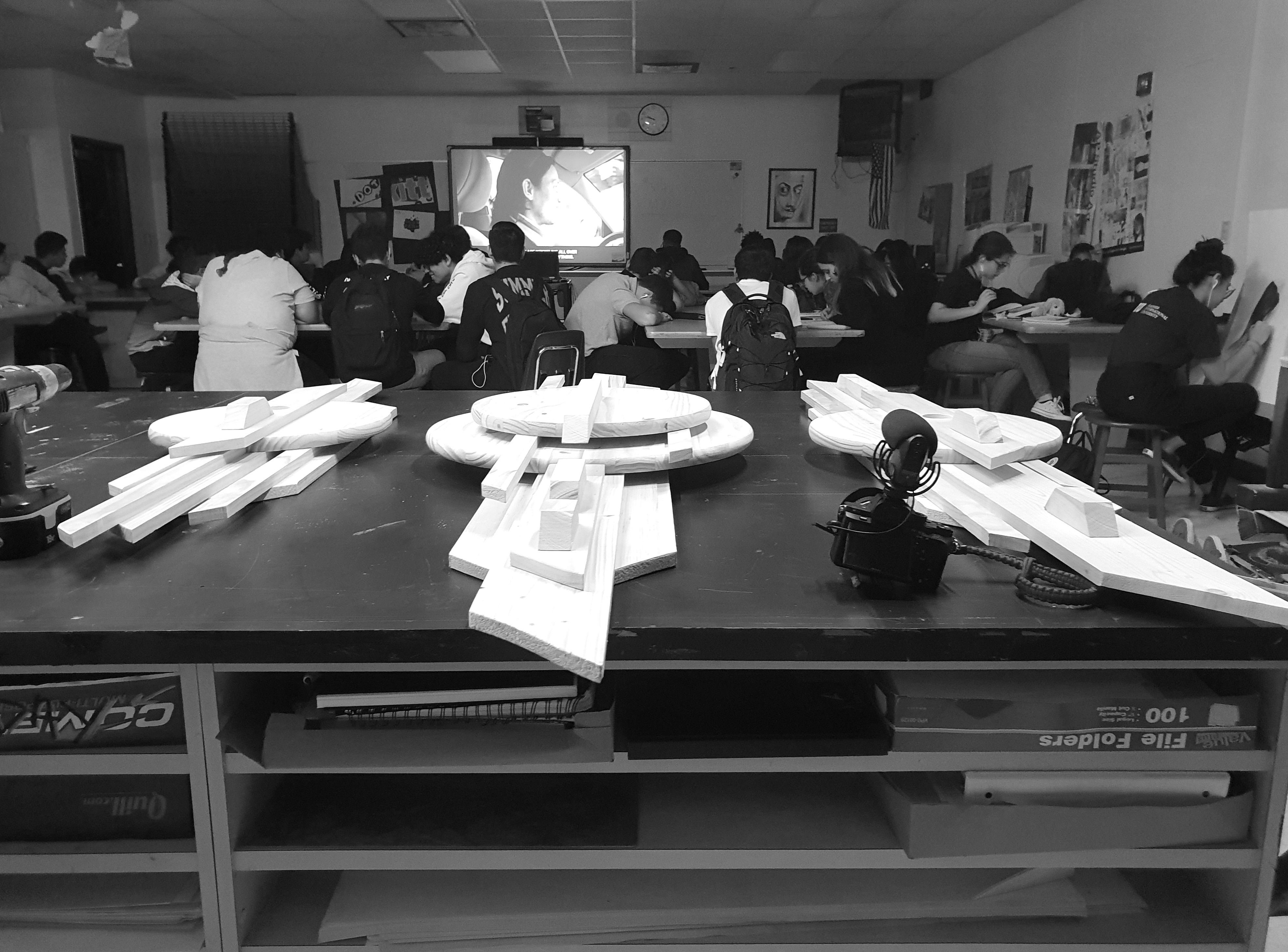 Le workshop s’est déroulé pendant deux jours dans la classe Art-visuels du professeur et artiste Derek Wilson sous la direction du Principal Mr Villalobos. Différentes classes ont pu assister à la réalisation de sculptures, des conférences, questionner et interagir au sujet de mon parcours et motivations.