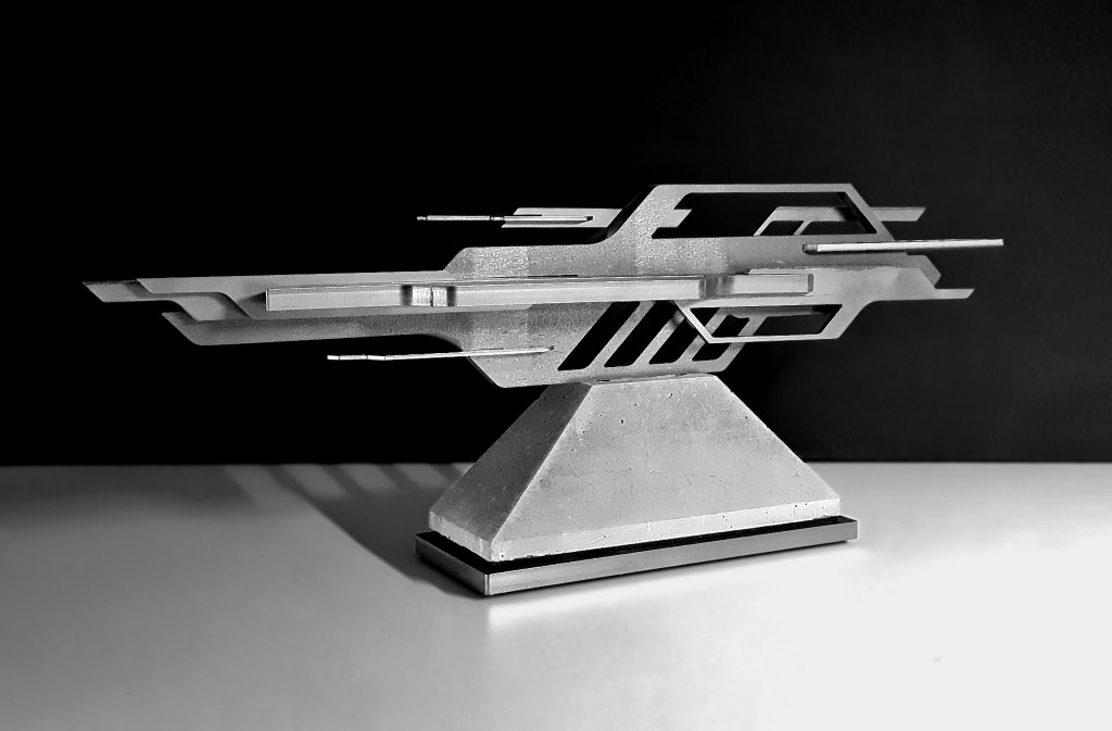 Xavier Magaldi and Swiss Crypto Cat are pioneers in digital art in Switzerland. They met in the virtual world of NFTs and digital art and have since continued to exchange ideas to evolve in this special sphere foreign to the general public. Their status as pioneers has earned them recognition from the media. As such, they have been able to share and initiate a new audience to the codes and infinite possibilities of technology in the service of art. For the « Reality Revolution » exhibition, they chose to define together an immersive and captivating experience. Starting from a similar technological basis, the two artists developed their own universe through a series of protocols that outline the contours of their creations. Xavier Magaldi, whose work is situated between futurism and brutalism, presents sculptures. Metal and concrete have been used to shape these volumes, which are physically present and assert themselves in the gallery to be touched and contemplated. A replica of each sculpture has been shaped in pixels, filters, and nuances in a virtual reality program. This is where a new dimension opens up within these sculptures. Equipped with a virtual reality headset, the viewer can approach an object that no longer has a scale, other than the projection that we choose to impose on it.
